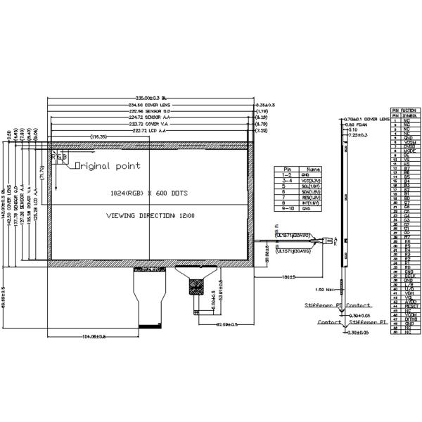 10.1 Inch Tft Lcd Touch Screen ,1024x600 50 Pins 320 CD/M2 24bit RGB Images |